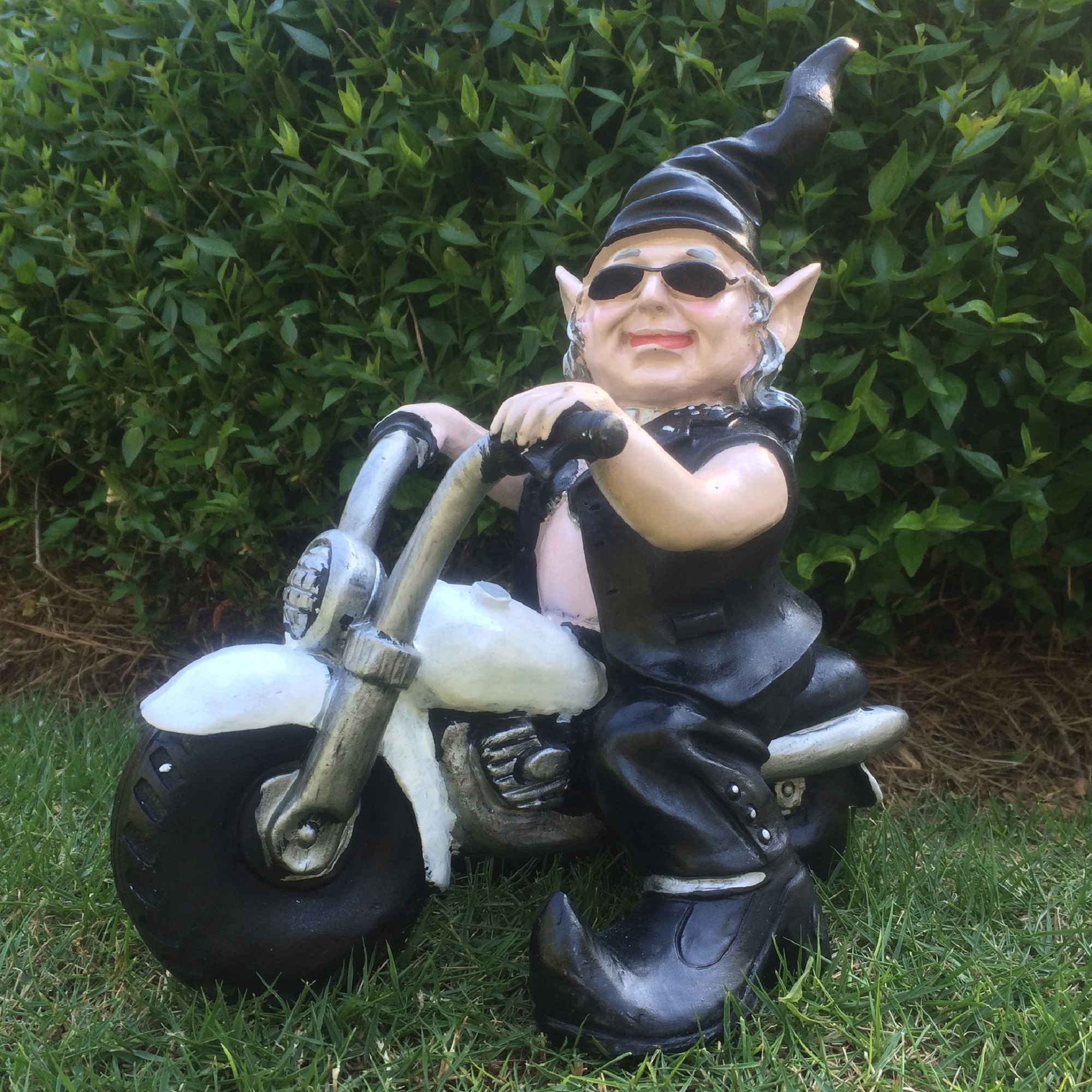 Biker Babe on White Motorcycle Gnome