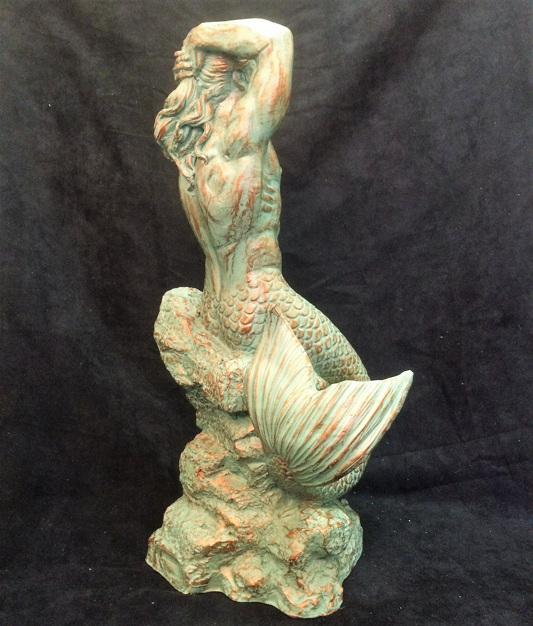Triton Merman Sitting on Rock 21" Patina