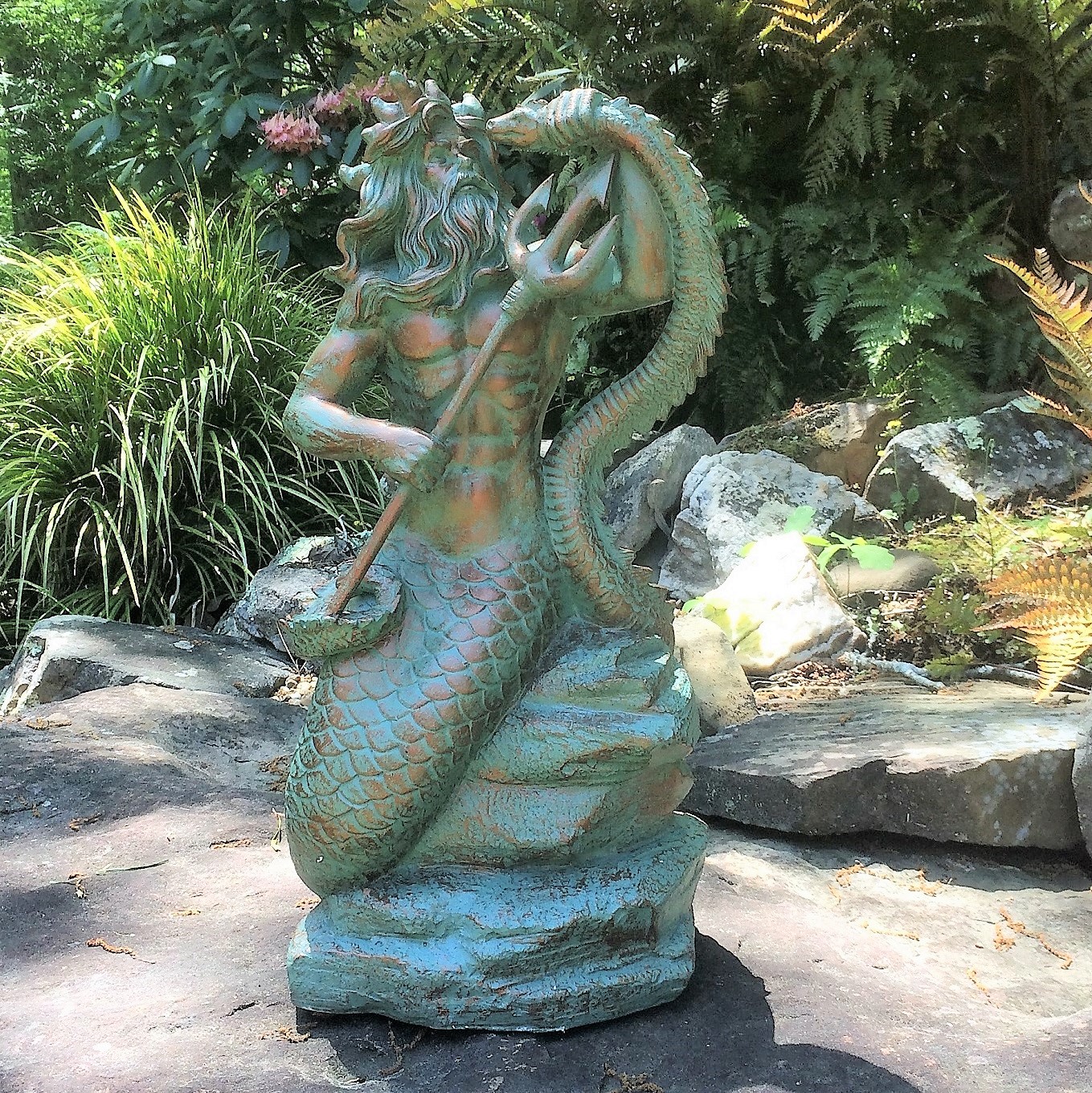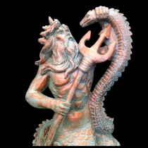 Poseidon Sitting on Rock 21" Patina